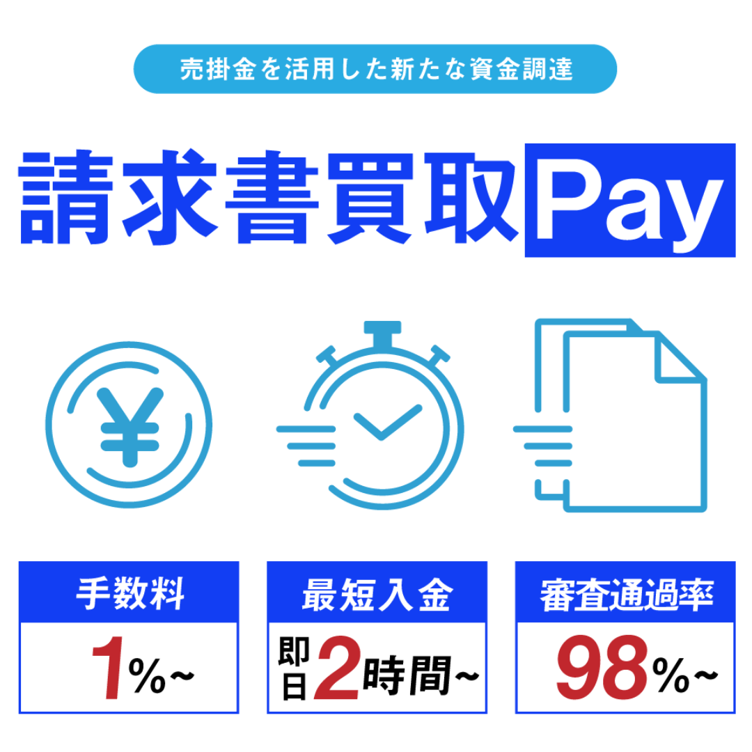 請求書買取payは売掛債権を買い取る事により、売掛金から手数料を差し引かれた金額を早期に資金化できるため安定した資金繰りを実現することが可能になります。